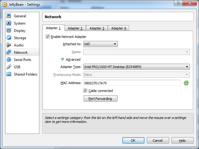 步骤:1选择适配器案例1:仅互联网NAT适配器最简单的解决方案是使用一个NAT适配器,如果主机连接到Internet,它会直接将您连接到Internet,但是您将无法通过此设置获得ADB连接。