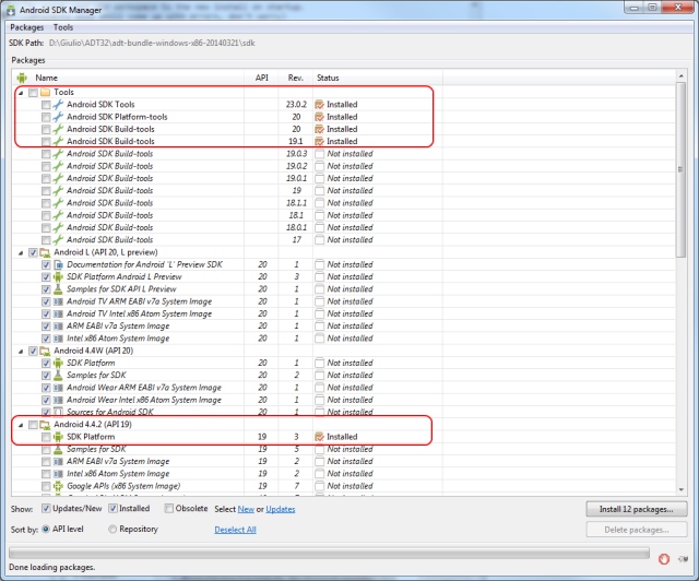 然后我提取了新的ADT包来解决这些问题。之后,我在android sdk manager中更新了android 4.4.2(api 19)。
