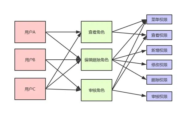 ? ? ? ? 用户是发起操作的主体,可以是业务性的访问者、可以是后台管理系统的用户。角色起到了桥梁的作用,连接了用户和权限的关系。由于角色和权限的关系是多对多,而用户与角色也是多对多的关系,所以一个用户就有一个或多个角色一个或多个系统权限(这里关于针对比较简单的系统,例如用户量很小,项目级别也很小的系统,可以采用用户直接和权限关联。也就是添加一个用户,就直接针对用户去添加对应的权限,可以没有角色的概念。针对这种情况,再次不展开讨论)。