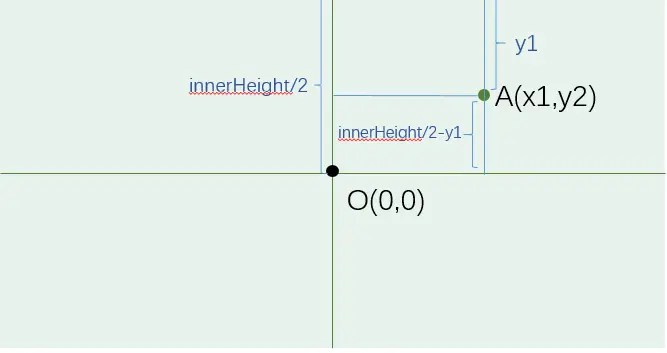 1 2 3 4 5 6 7 8 9 10 11 12 13 14 15 | //得到 mouse.x = (e.clientX / window.innerWidth) * 2 - 1; mouse.y = -(e.clientY / window.innerHeight) * 2 + 1; 推导过程: 设A点为点击点(x1,y1),x1=e.clintX, y1=e.clientY 设A点在世界坐标中的坐标值为B(x2,y2); 由于A点的坐标值的原点是以屏幕左上角为(0,0); 我们可以计算可得以屏幕中心为原点的B'值 x2' = x1 - innerWidth/2 y2' = innerHeight/2 - y1 又由于在世界坐标的范围是[-1,1],要得到正确的B值我们必须要将坐标标准化 x2 = (x1 -innerWidth/2)/(innerwidth/2) = (x1/innerWidth)*2-1 同理得 y2 = -(y1/innerHeight)*2 +1 |