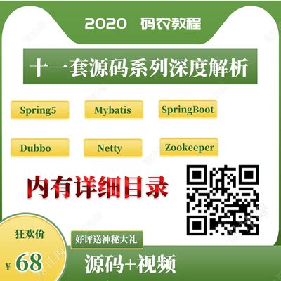 【源码系列】总目录:11套源码系列套餐Spring5,Mybatis,SpringBoot,Dubbo,Netty,Zookeeper,Tomcat源码深度解析底层源码剖析视频教程